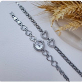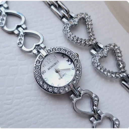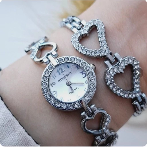 ساعت مچی زنانه هانگری همراه بادستبند رنگ ثابت قاب نگینی کیفیت عالی