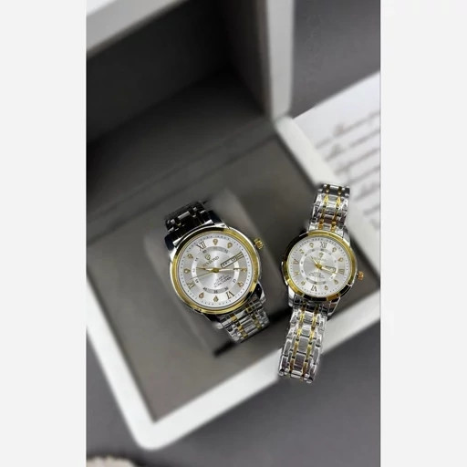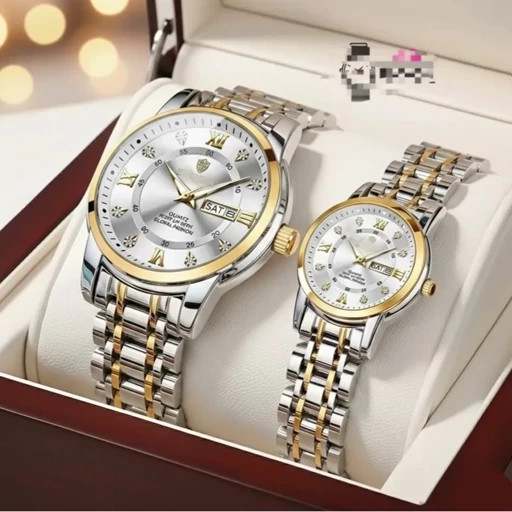 《highe quality》 Original watch ⌚️بین باند مدلی نو مقاوم دربرابر آب برندشرکتی اوریجینال کارت گارانتی دارای روز شمار ایام هفته بند استیل فولاد شیشه سافایر شب نما قفل دو پروانه موتور اصلی همراه جعبه وباتری اضافی برای ست دوعدد ثبت کنید