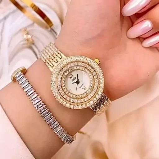 ساعت مچی زنانه هایدی قاب نگینی بند دستبندی رنگ ثابت ضد اب کیفیت عالی