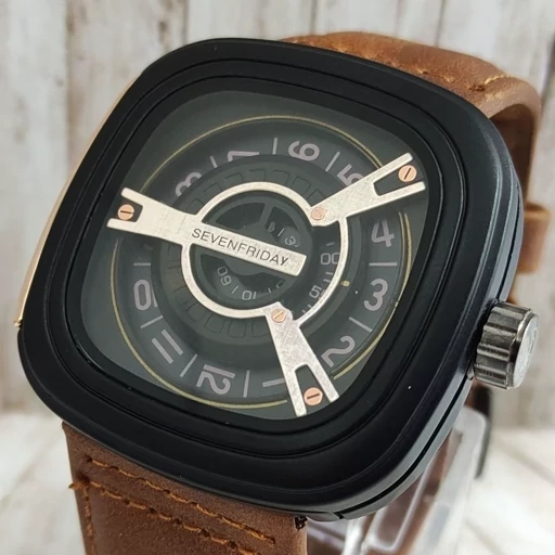 بند چرم اصلی سون فرایدی پلاک پیچ شده بغل قاب قفل استیل سگکی همراه جعبه وباتری اضافه