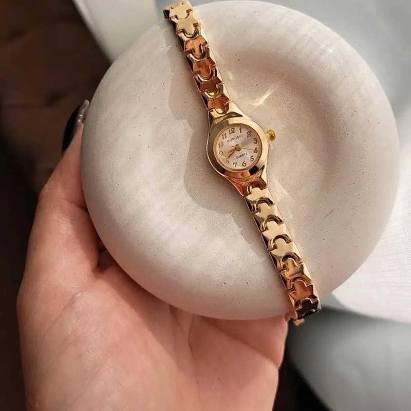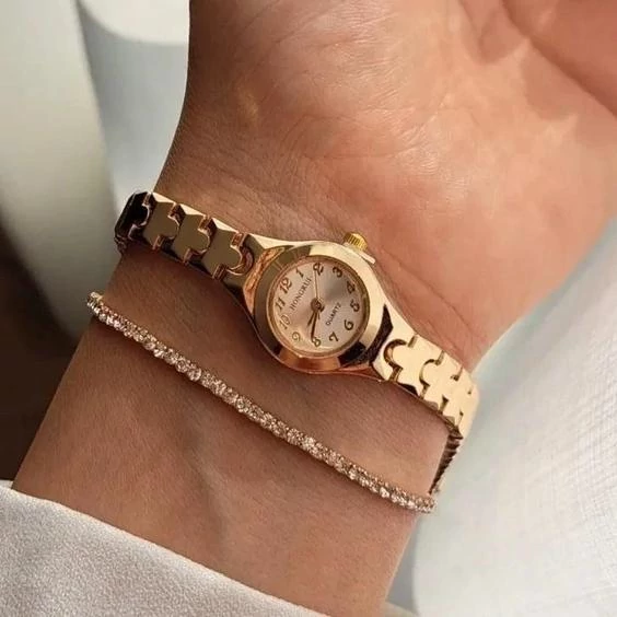 ساعت مچی زنانه برند هانگری شیک و ظریف و با کیفیت دارای شش ماه گارانتی بعد از خرید همراه با جعبه غنچه و باتری اضافی