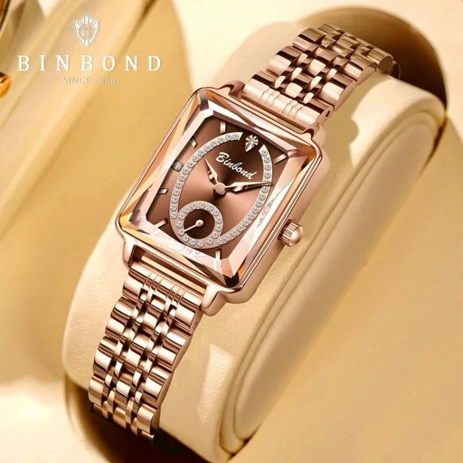 BOND ♤TRENDY STYLE 2025 《highe quality》 ⌚️بین باند مدلی نو زنونه اوریجینال زیرثانیه فعال مقاوم دربرابر آب بند استیل قفل استیل پروانه ای موتور اورجینال شیشه الماس صفحه شب نما همراه جعبه وباتری اضافی